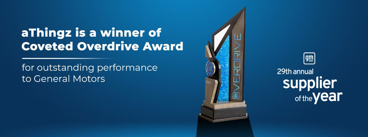 Detroit, MI, June 22, 2021 – aThingz was recognized as a GM Overdrive Award winner in General Motors’ 29th annual Supplier of the Year awards. aThingz was one of only 26 companies to be selected as an Overdrive winner in 2020.